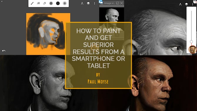 How To Paint And Get Superior Results From A Smartphone Or Tablet. Paul Moyse takes you through the whole process of painting a caricature of John Malkovich on a mobile device (Samsung Note 3) using Infinite Painter, from starting a value study with custom brushes on a coloured background, right through to the finished render and finally the colouring process in Photoshop.