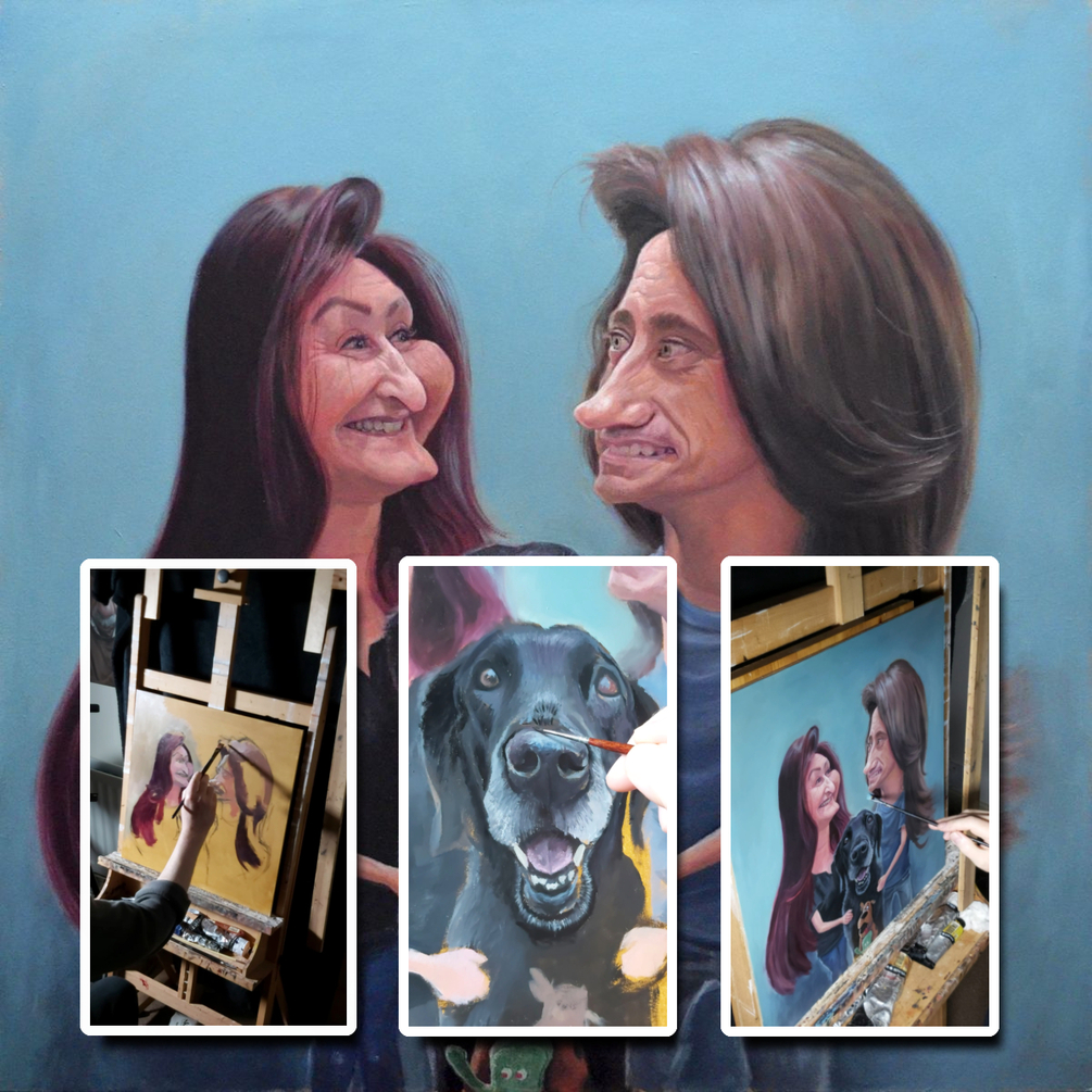 In 2022, I was invited to be guest of honour at the 31st ISCA Caricature Convention in Orlando Florida. Part of my role at the event was to offer a commission up for auction. Glenn and JoAnn put in the winning bid, and I couldn't have been more thrilled, both to accept the commission and to get to paint them.